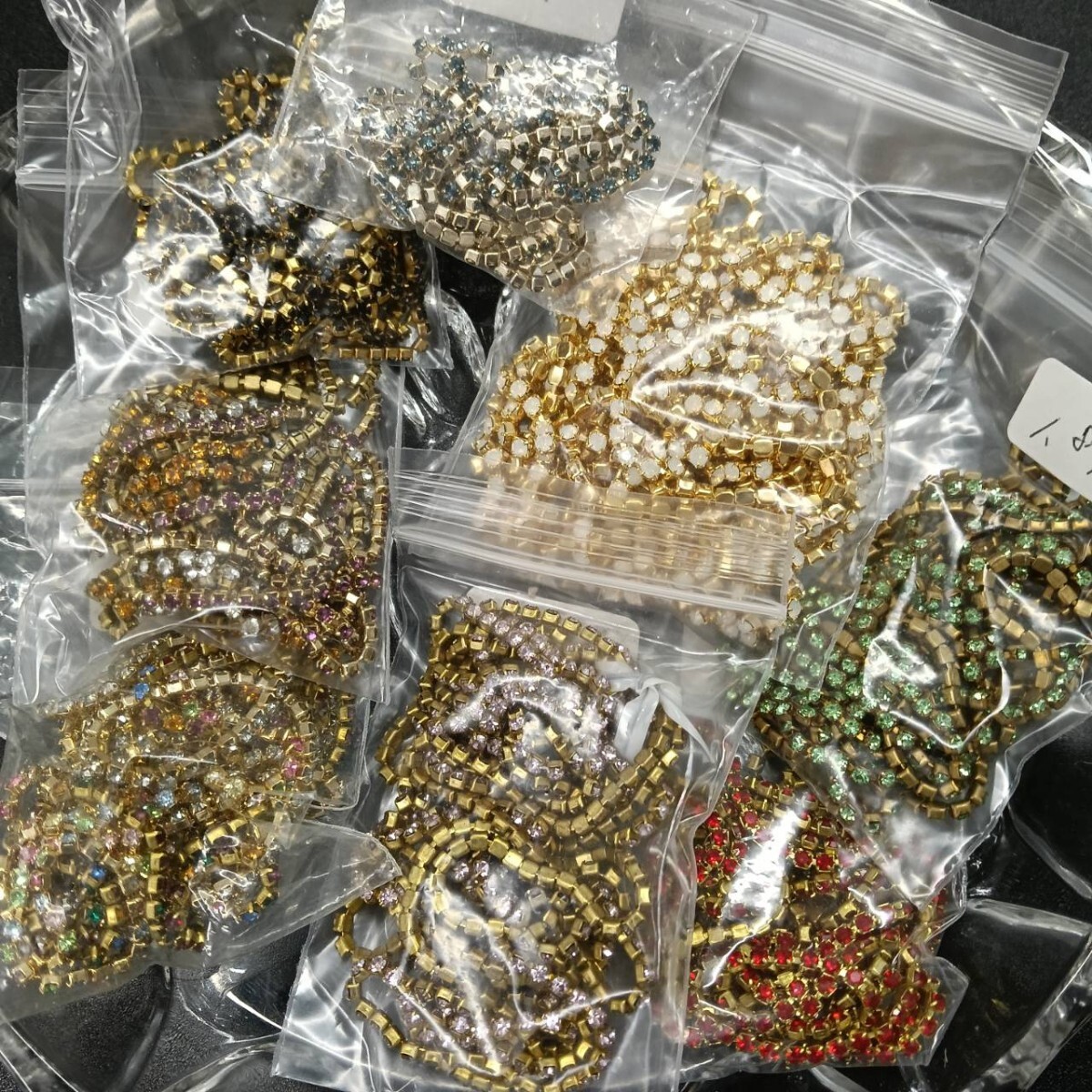 > L483☆ほぼ未使用 SWAROVSKI スワロフスキー ヴィンテージ ルース 約180g カップチェーン 連爪 2mm 緑 赤 青 オレンジ 紫×ゴールド色 S528