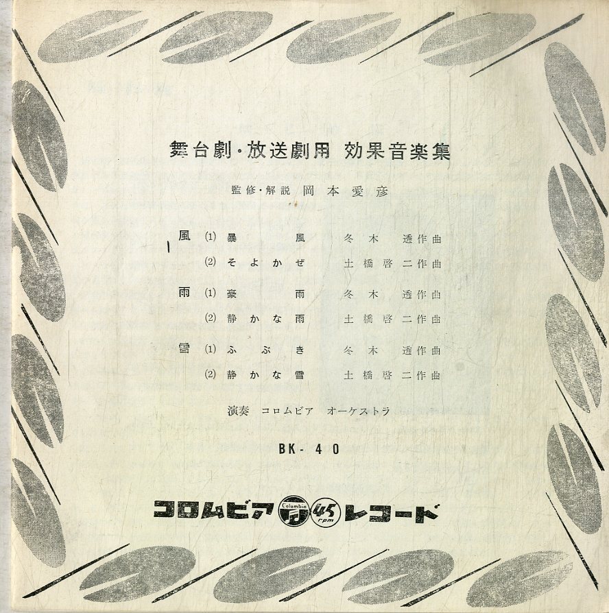 C00197161/EP/コロムビア オーケストラ「舞台劇・放送劇用 効果音楽集」拍卖