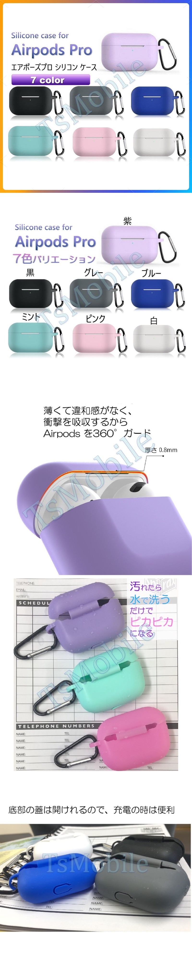 > AirPodsPro対応ケース シリコン AirPods Pro Case カバー カラビナ付き エアーポッズプロケース 防塵 耐