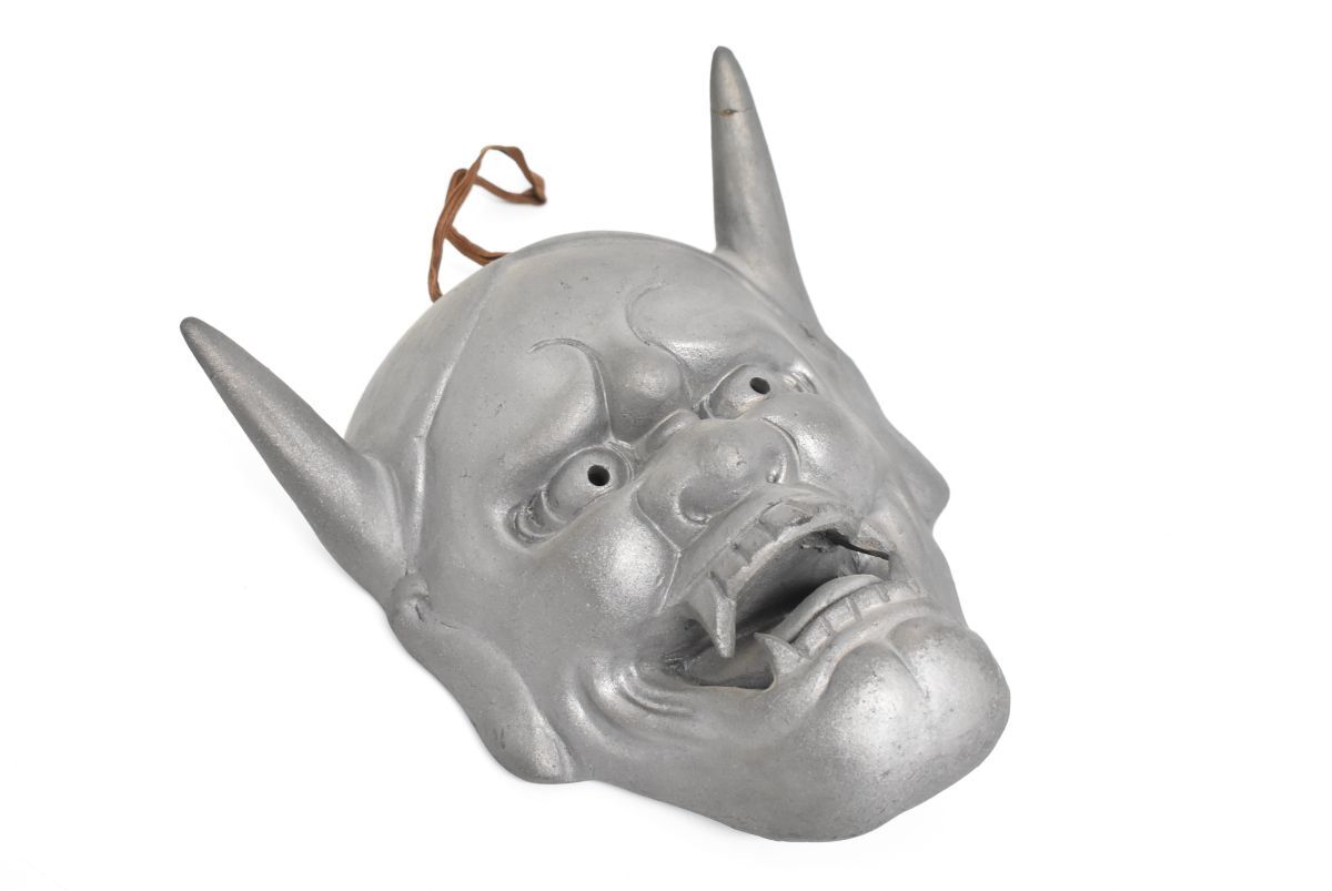- (1265M 1002M8) 1円~ 般若面 鬼面 魔除け 壁掛け 飾り紐付 オブジェ 能面 陶器 和風 インテリア 伝統工芸