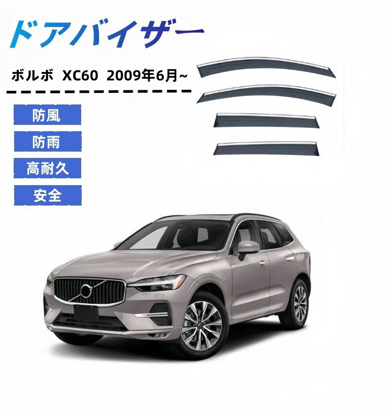 - ドアバイザー ボルボ XC60 UB サイドバイザー クロームモール 運転席 助手席 ウィンドウ 雨避け 日避け 4P
