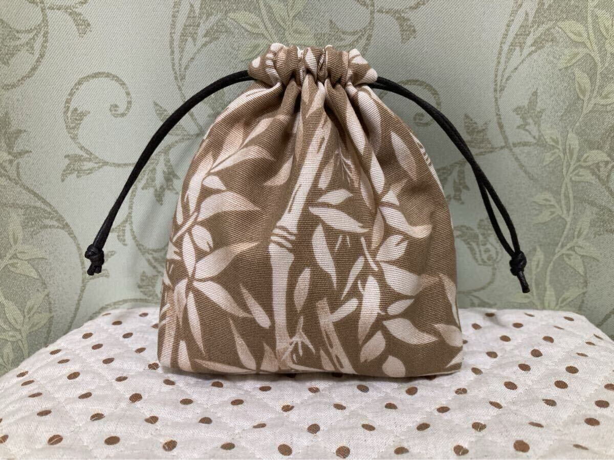 - 巾着袋 巾着 和柄 笹 竹 ハンドメイド ミニ巾着 drawstring bag handcrafted
