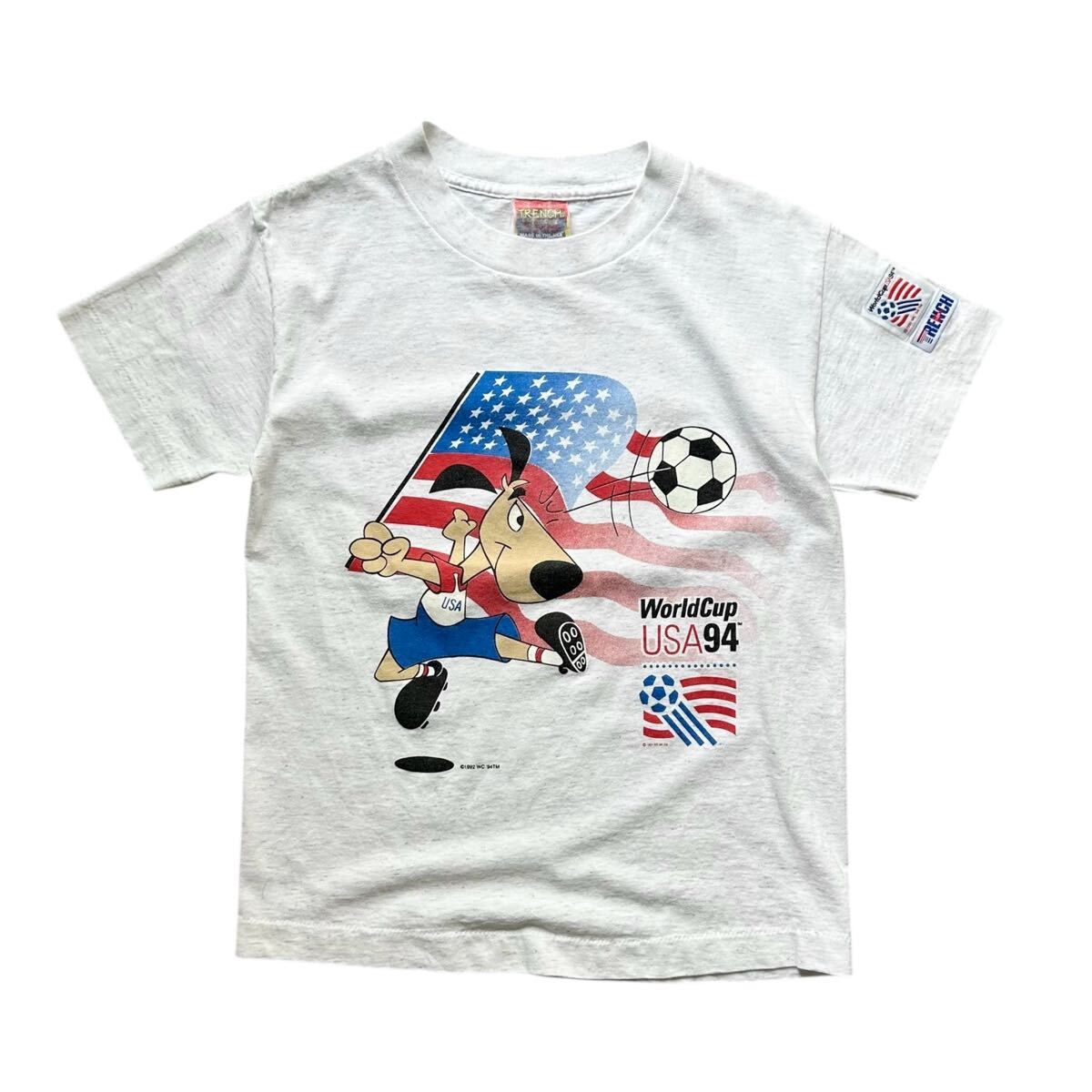 - USA製 90’s TRENCH ワールドカップ Tシャツ kids Mサイズ アッシュグレー 1994年 アメリカ ヴィンテージシングルステッチ イラスト