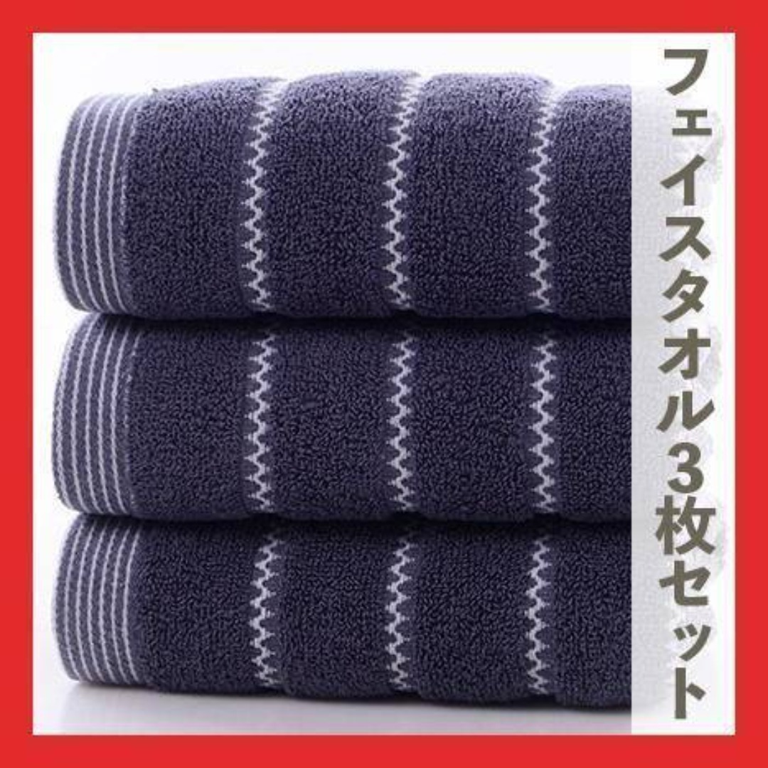 - ネイビー フェイスタオル 3枚セット ボーダー 来客用 タオル セット売り 汗拭きタオル 入院 手拭き キッチン 洗面台 洗面所