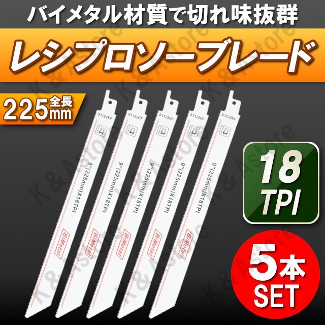 > レシプロソー セーバーソー ブレード バイメタル 替刃 替え刃 電動 ノコギリ のこぎり 金属用 解体用 切断 18山 18TPI 225mm 5本セット