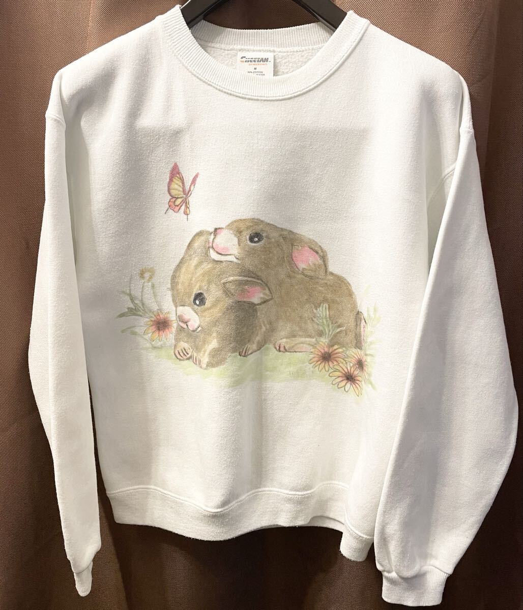 - MADE IN USA製 CHEETAH BY MERVYNS うさぎ ラメプリント スウェットトレーナー ホワイト Mサイズ マービンズ アメリカ製 米国製 白