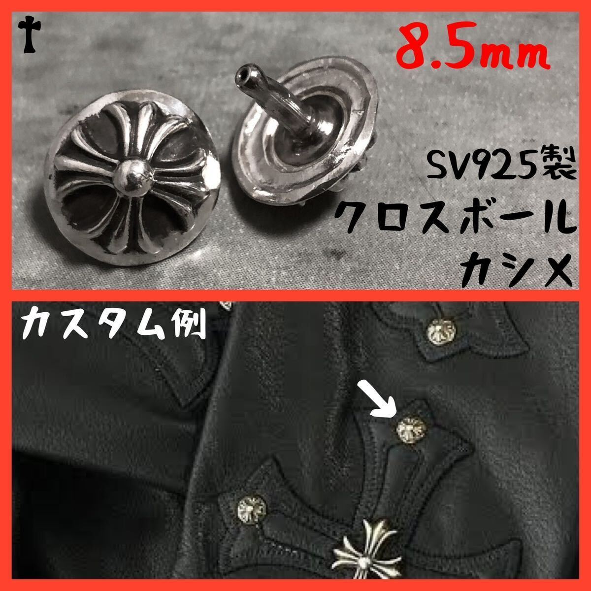> 【8.5mm】 シルバー925 クロス コンチョ カシメ クロスボール Sterling silver 925 レザークラフト リベット オリジナル カスタム 十字架