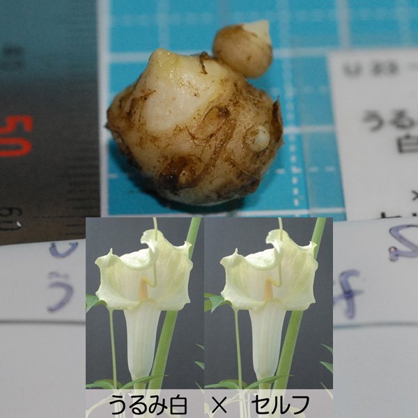 > ウラシマソウ U23-03 /SM 白花交配 『うるみ白 × セルフ』 SM球 1球【一作開花球】(ウラシマソウ、山野草、テンナンショウ)