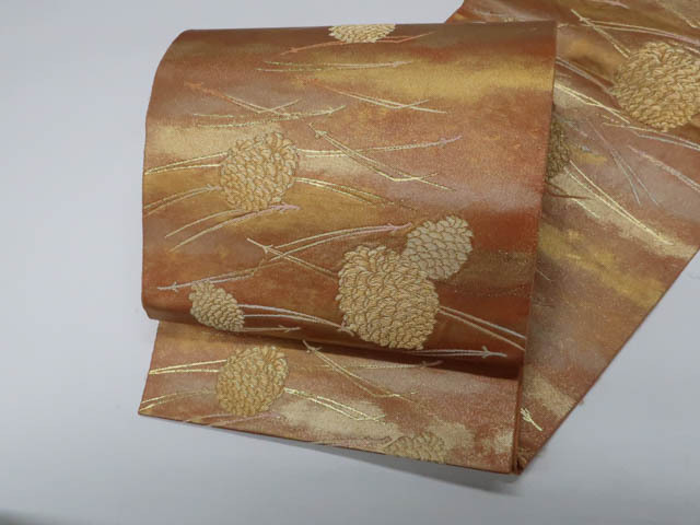 > 《京都一輝堂》リサイクル着物 袋帯 六通 金糸 松ぼっくり 正絹 25b08-1538