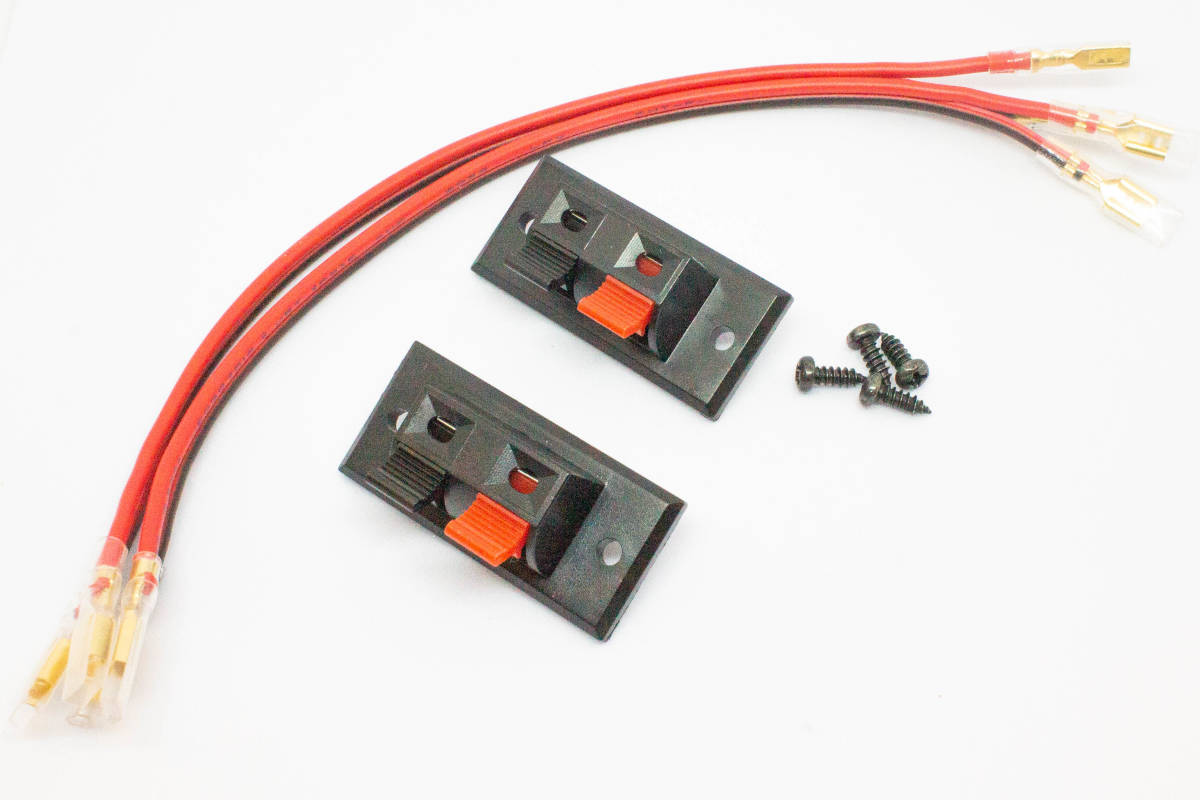 - 二極プッシュ式スピーカー端子 金メッキファストン端子付内部ケーブル&取付ネジ付 ペア