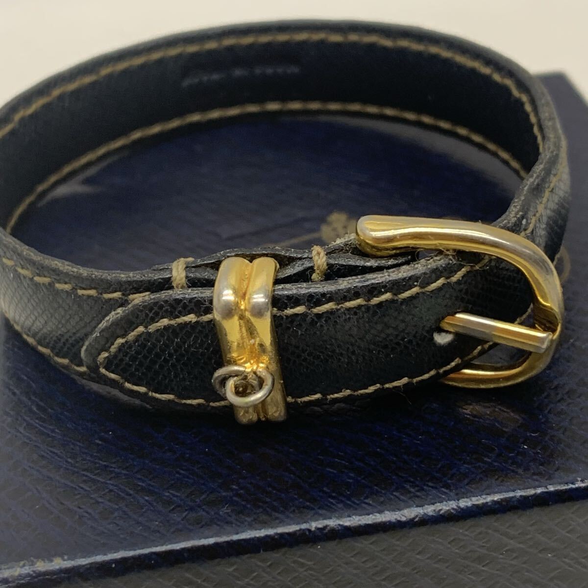 - PRADA プラダ レザー バングル ブレスレット ネイビー