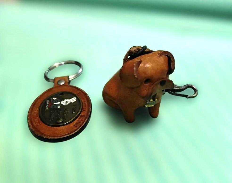 - レザーキーホルダー2点セット ブルドッグ立体型と黒部ダムのお土産キーホルダー