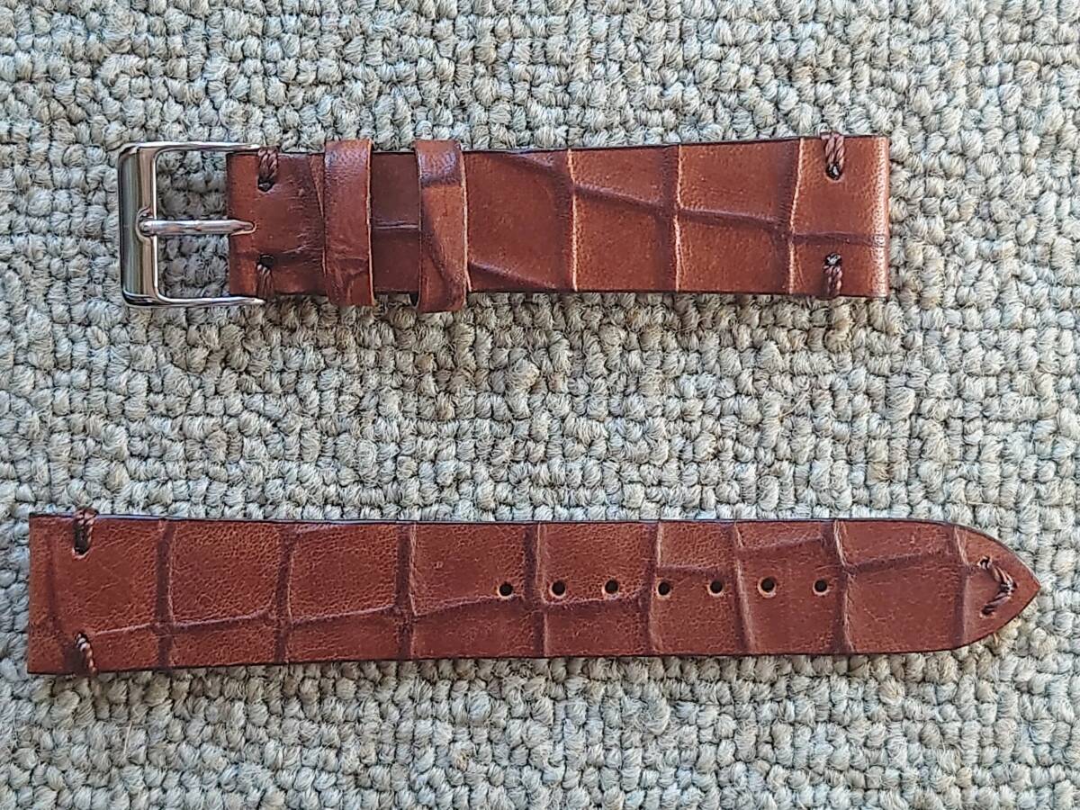 - レアな人気!!クロコダイル調逆型押し■高級クロコダイル調カーフ革逆型押しバンド■時計本体側取付幅18mm尾錠幅14mm茶色■銀色尾錠金具付き