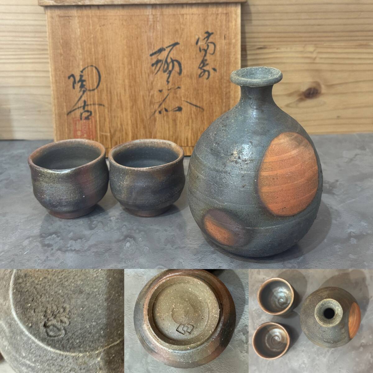- ☆備前焼☆小西陶古 窯変 酒器揃☆備前徳利・ぐい呑 2客☆