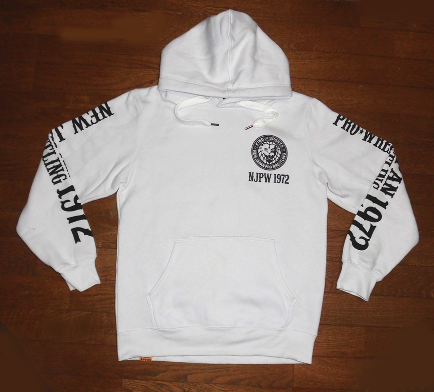 > NJPW1972 新日本プロレス パーカー プルオーバー フーディー フードスウェット ライオンマーク 裏起毛 WHT L USED 美品/猪木蝶野長州力棚橋
