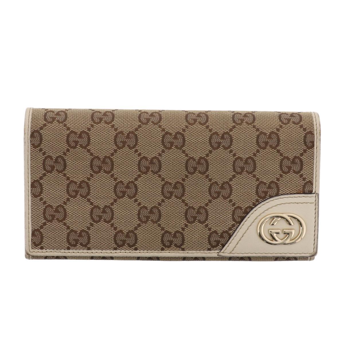 > GUCCI グッチ 財布 二つ折り財布(小銭入有) 204836 Beige キャンパス×レザー 二つ折り長財布