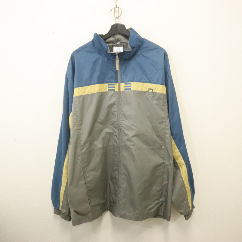 > S871 2001年製ビンテージ adidas アディダス ナイロンジャケット■00s 表記XLサイズ グレー 裏地メッシュ アメカジ ストリート 古着 古着卸
