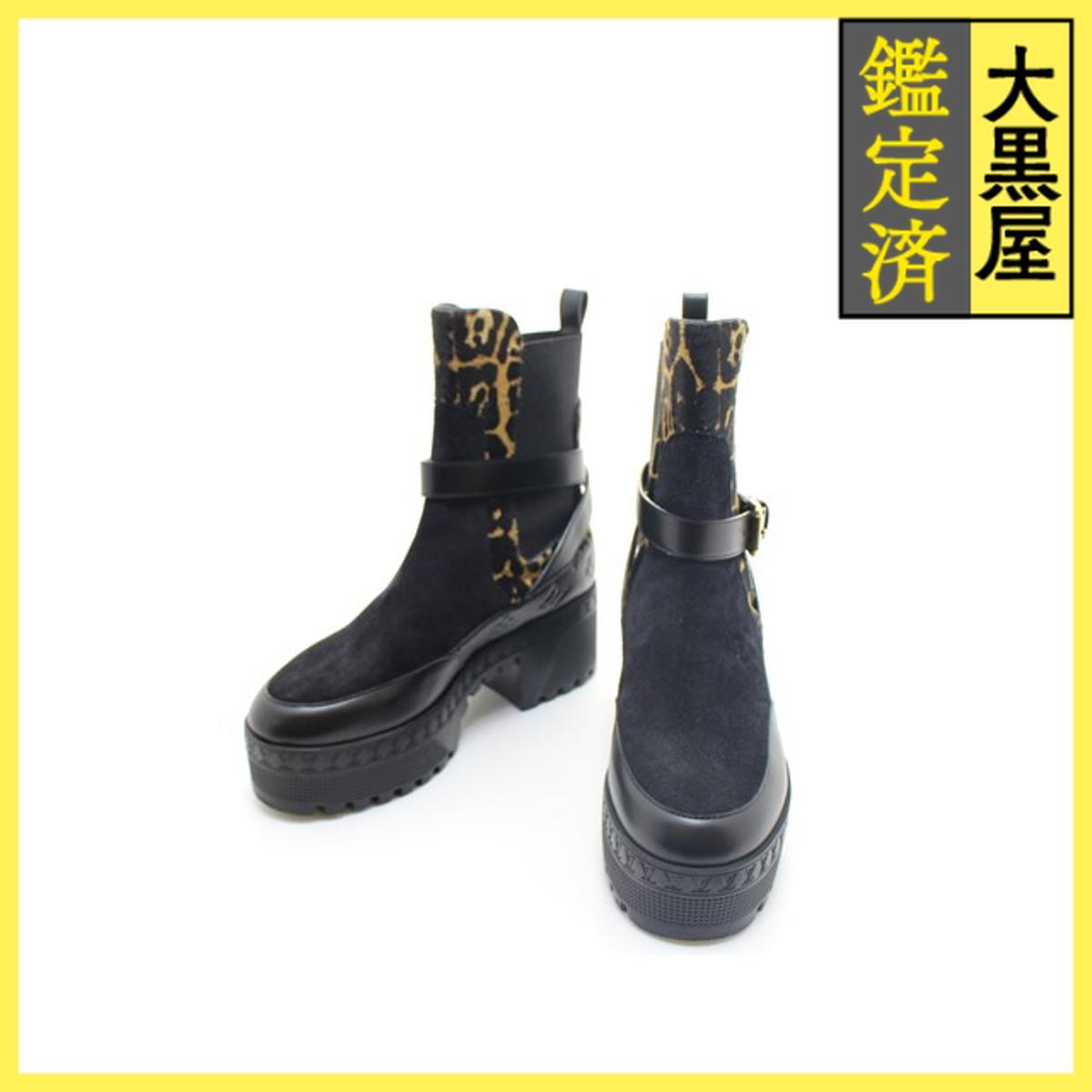 > LOUIS VUITTON ルイ・ヴィトン 靴 ローリエ―トライン レオパードサイドゴアブーツ レディース37ハーフ(24~24,5cm) ブラック