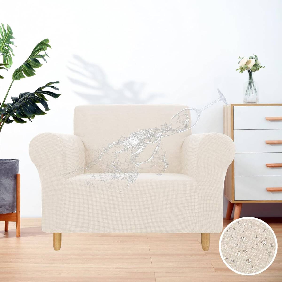- HMZM ソファーカバー 1人掛け 良い耐水性 ペットの引っかき傷からの保護 肘付き 無地 縦横弾力 ストレッチ フィットタイプ (アイボリー)