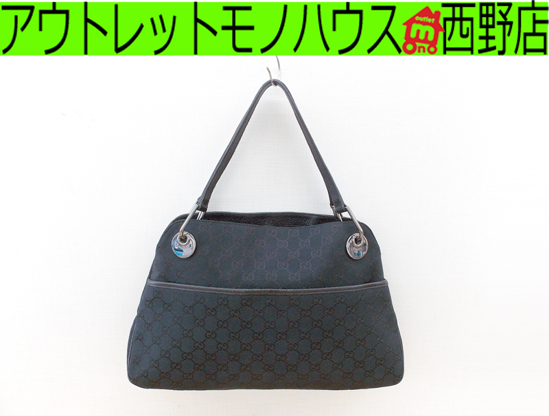 ■GUCCI グッチ GGキャンバス トートバッグ 121023 ブラック系 W38cm ショルダー 肩掛け 本物