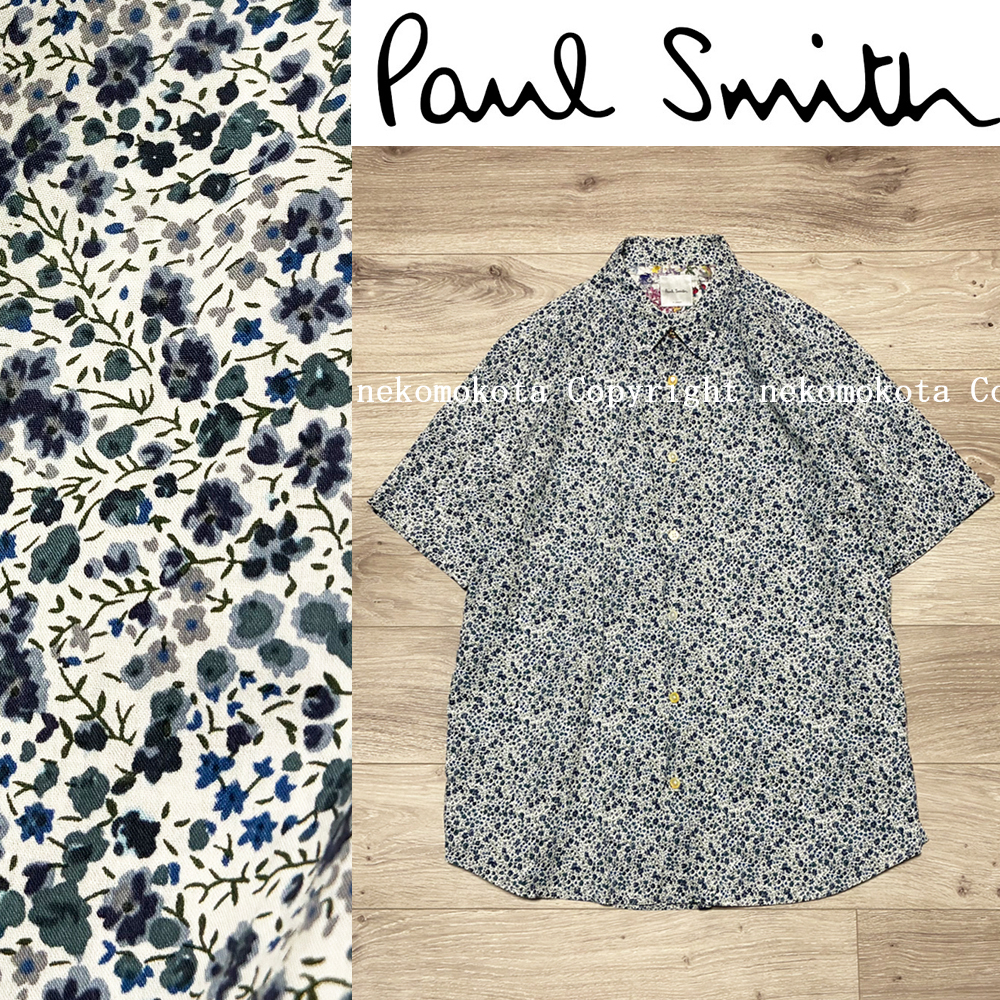 - ポールスミス 小花柄 フラワー 半袖 シャツ XL ブルー メンズ 総柄 Paul Smith