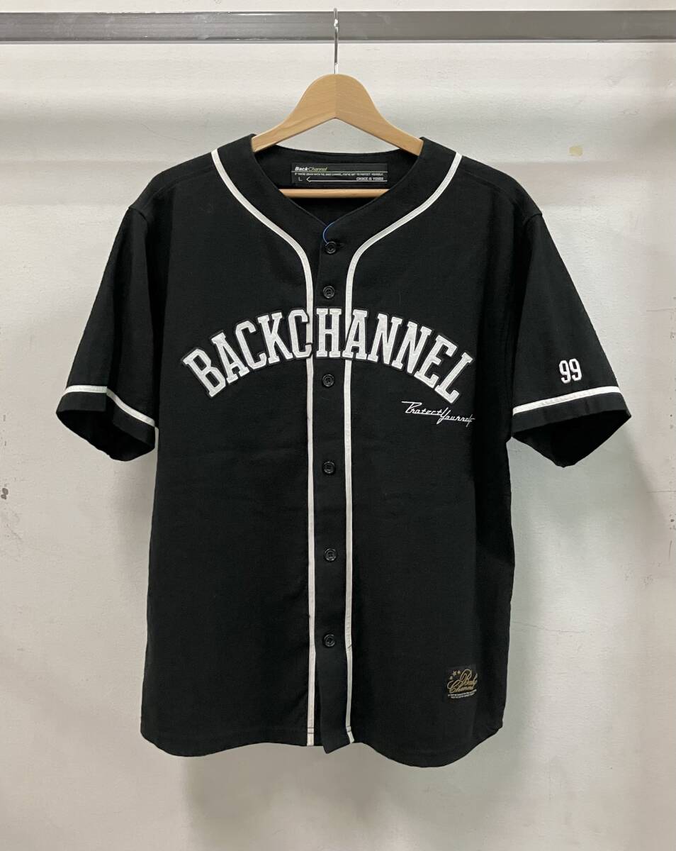 - BACK CHANNE バックチャンネル 半袖Tシャツ ベースボールシャツ 99 ロゴ 刺繍 サイズL 日本製 ブラック 綿75% 絹25%