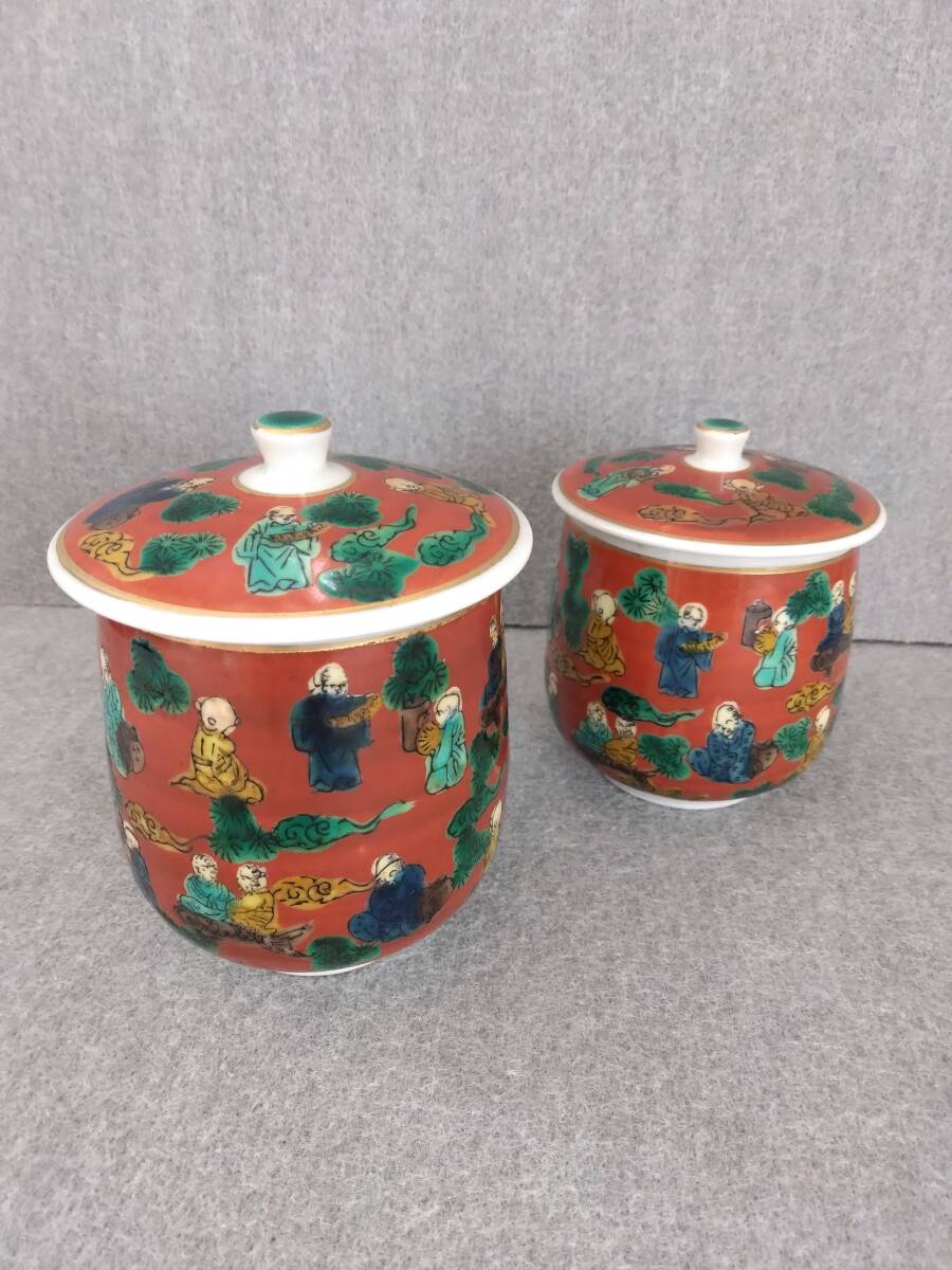 - 久谷木米 夫婦茶碗 九谷焼 赤絵人物