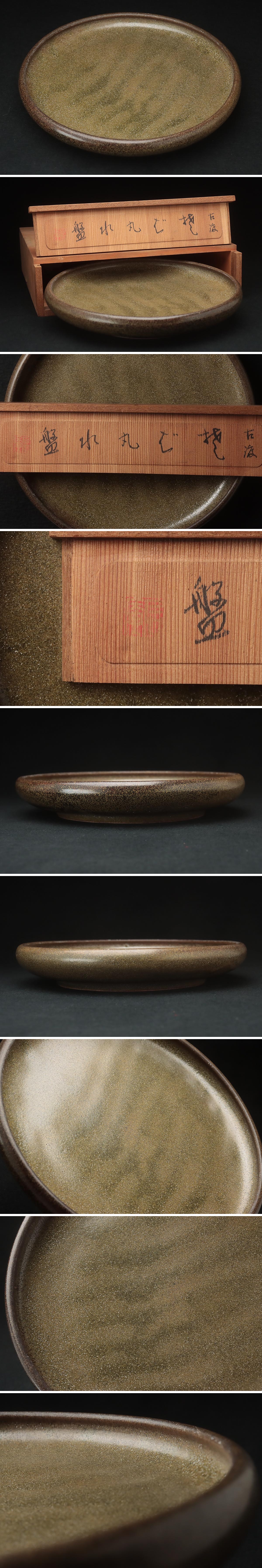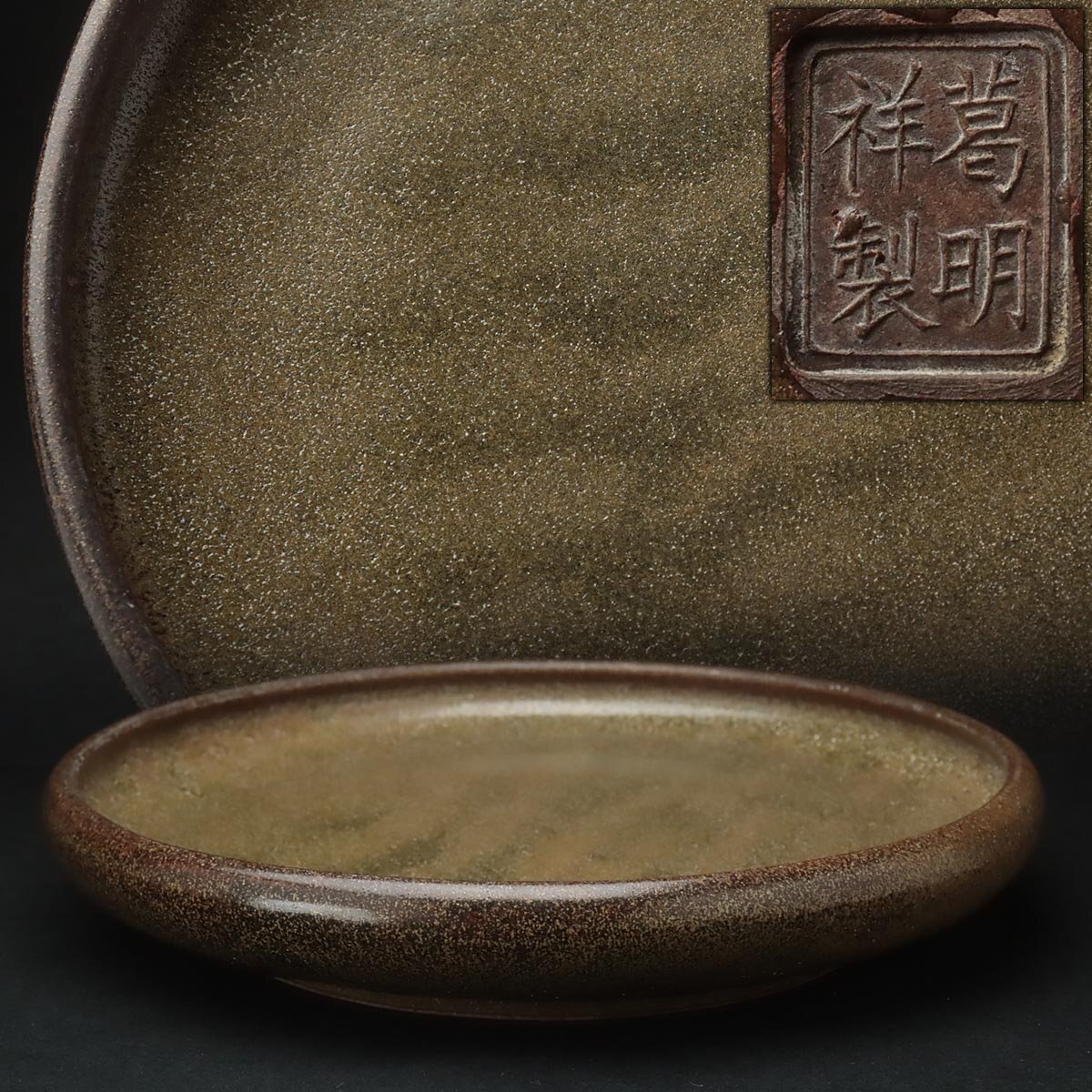 > FB496 中国美術【葛明祥製】古渡 窯変釉 丸水盤 径26.1cm 旧蔵印箱付・茶叶末釉水仙盆・砂鉢・盆器 盆樹 中国古陶磁 中国古玩