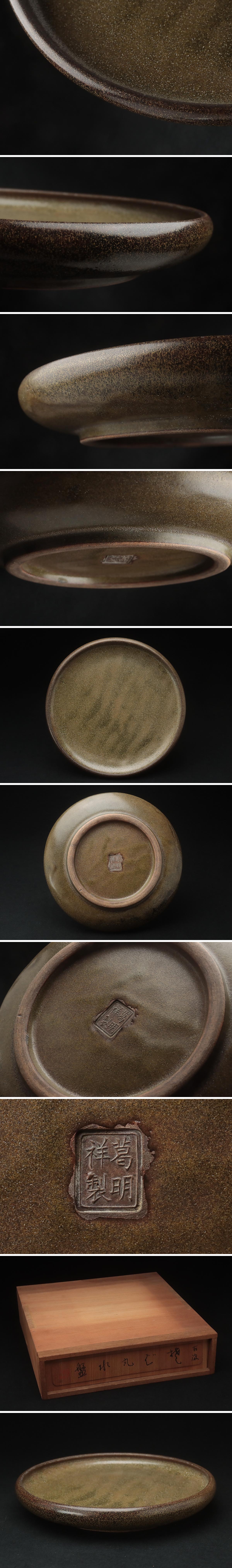 - FB496 中国美術【葛明祥製】古渡 窯変釉 丸水盤 径26.1cm 旧蔵印箱付・茶叶末釉水仙盆・砂鉢・盆器 盆樹 中国古陶磁 中国古玩