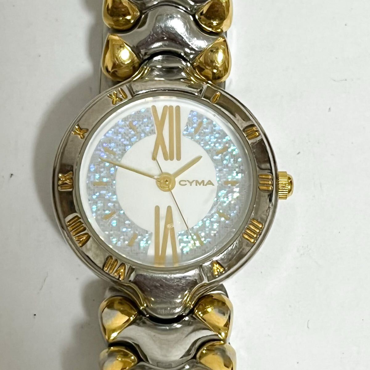 > 和851A★ CYMA シーマ クォーツ 腕時計 ウォッチ 3針 ホワイト ゴールド メタルバンド レディース 6020071