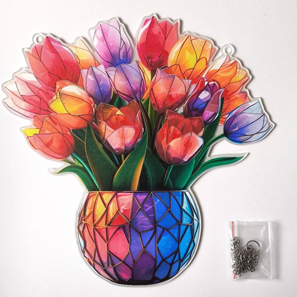 - 【カラフルなチューリップの花瓶飾り】アクリルプレート 飾り サンキャッチャー チェーン付き オブジェ お洒落 壁や窓辺の飾りに◎◎