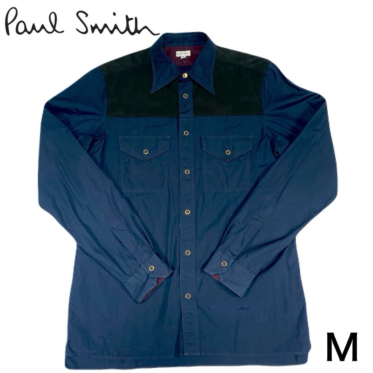 > Paul Smith ポールスミス 長袖 シャツ スナップボタン ボタン刻印 日本製 冬 秋 メンズ ネイビー M
