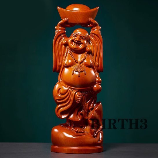 - 仏像 木彫り 七福神 布袋 様 布袋さんの置物 木像 木製フィギュア 花梨木 置物 金運 お守り高さ30cm