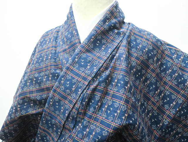 > 《京都一輝堂》【着物】 紬 格子文様 身丈約160.5cm 裄丈約62cm 24z-2472