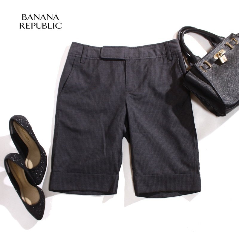 > 美品 バナナリパブリック Banana Republic ヘンリボーン スーツ ハーフパンツ 6 グレー レディース オフィス 通勤 フォーマル 毛100%