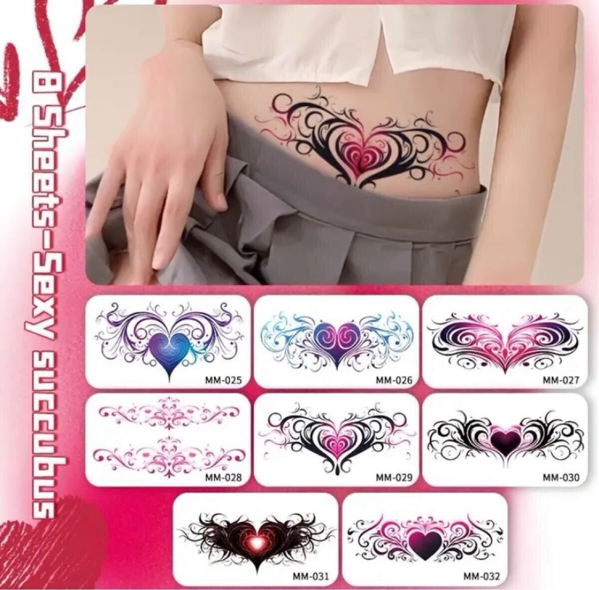 - 【8枚セット】淫紋 タトゥー シール 8枚セット 小悪魔 天使 コスプレ ステッカー 配信撮影 セクシー メンエス コンカフェ