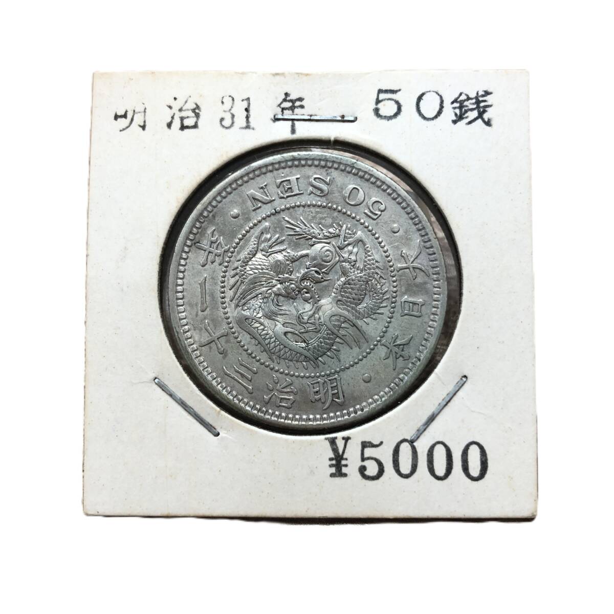 - ★1円~ #14362 明治31年 龍 50銭 銀貨 大日本 大日本帝国 古銭 アンティーク コレクション 貨幣 硬貨 銀貨 silver SV