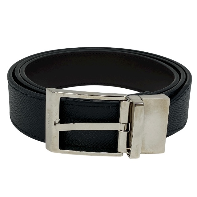 - 未使用 バリー 6212791 リバーシブル ベルト アクセサリー ロゴ レザー ブラック ブラウン シルバー金具 Bally(サイズ 110/44)