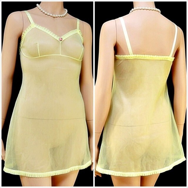 - PO2-081//透けすけエロティック☆しなやかでやわらかな上質素材☆ときめきイエロー☆スリップ※一番安価で送料はゆうパケット250円