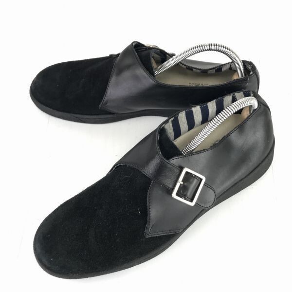 - 日本製★PREMIUM ROOS/プレミアムルース★つま先スエード本革/レザー/モンクストラップ【27.5/黒】ビジネス/ドレスシューズ◆A-74