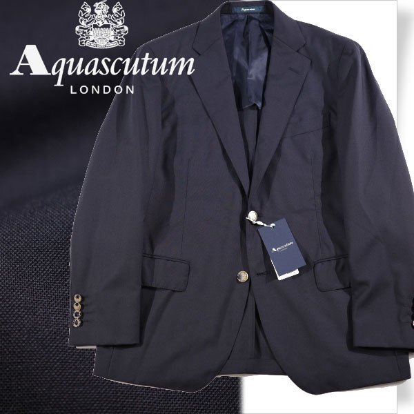 - 新品1円~★定価12.1万Aquascutum アクアスキュータム メンズ ウール毛100% ネイビーブレザー94AB4 コンブレ 金ボタン ジャケット◆5491◆