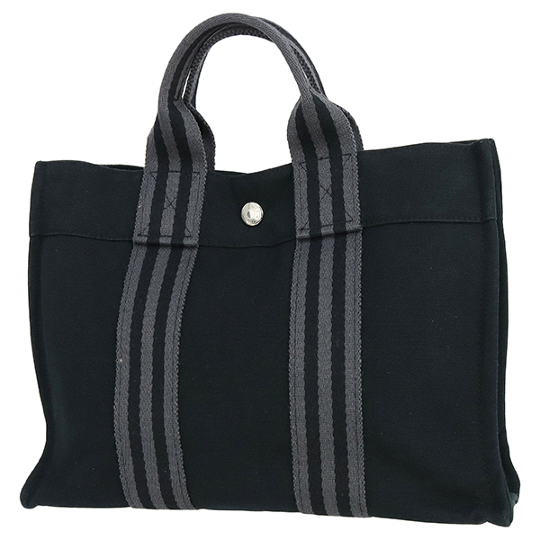 - エルメス フールトゥトート PM コットンキャンバス ブラック グレー h-m353