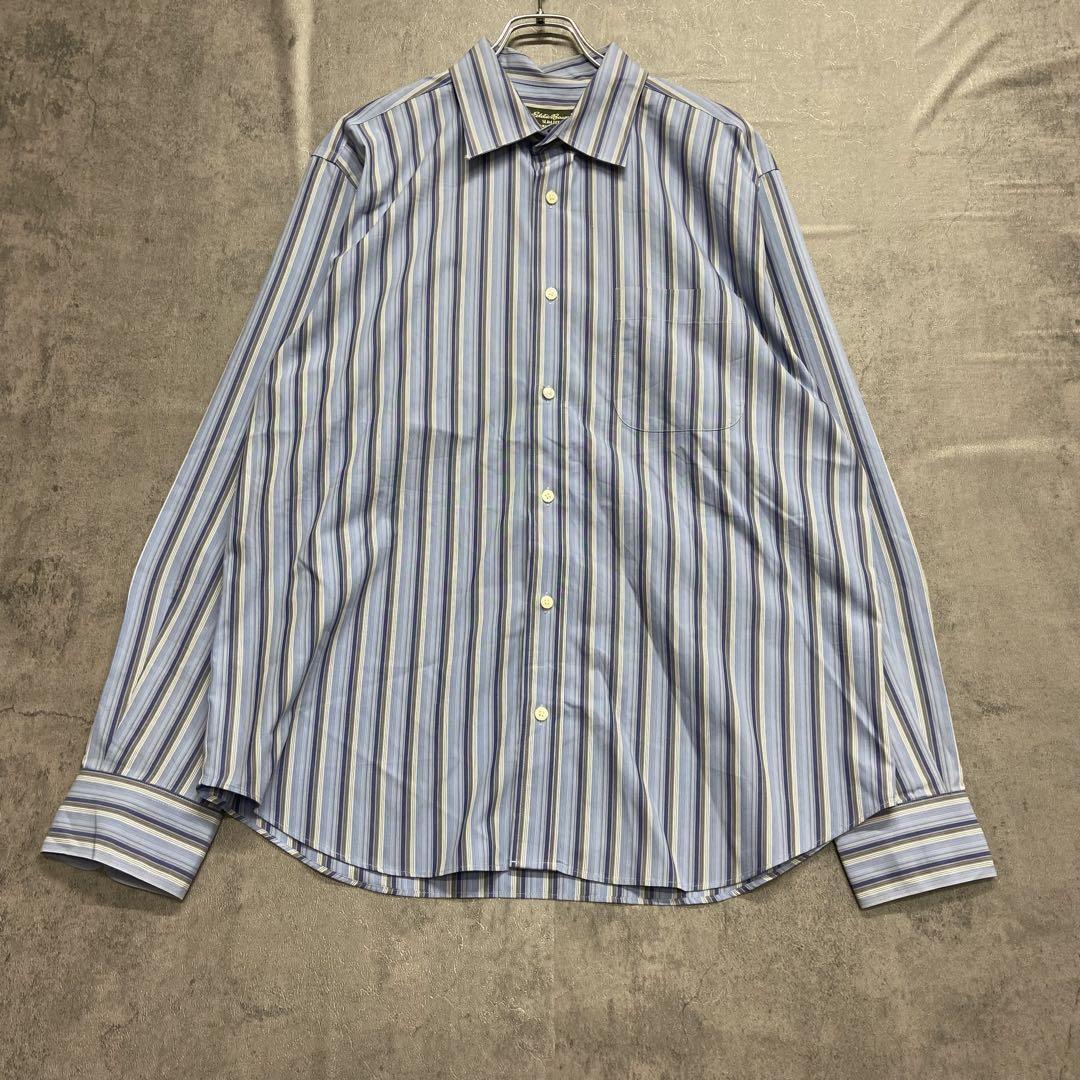 - エディーバウアー 長袖シャツ L 青白マルチストライプ スリムフィット【5961