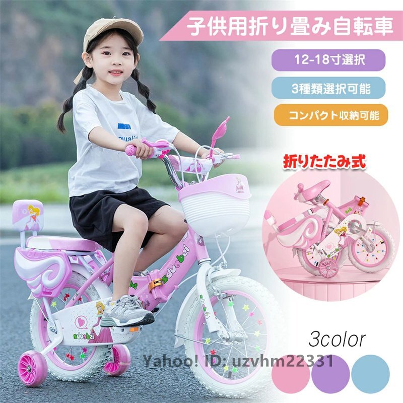 > 【特売品 タイプBピンク 16寸サイズ】幼児用自転車子供用自転車 折り畳み 幼児用自転車 男の子 女の子にも 高さ調節可能
