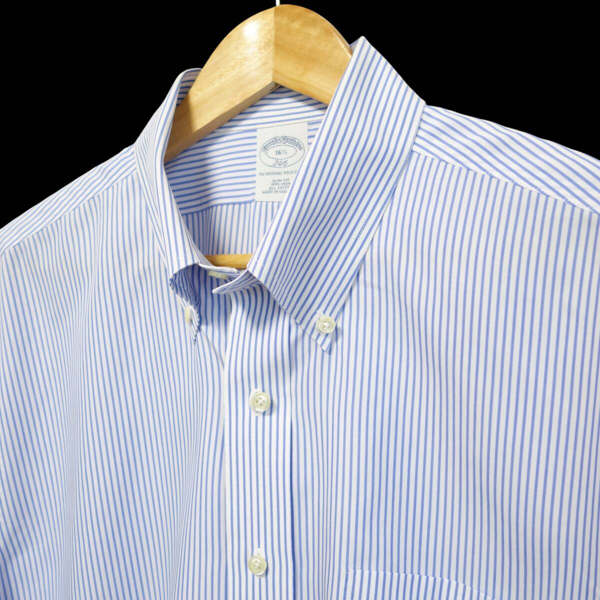 > 736■ブルックスブラザーズ BROOKS BROTHERS ストライプ ボタンダウン長袖シャツ・ドレスシャツ/16 1/2 (クリーニング済)【送料300円】