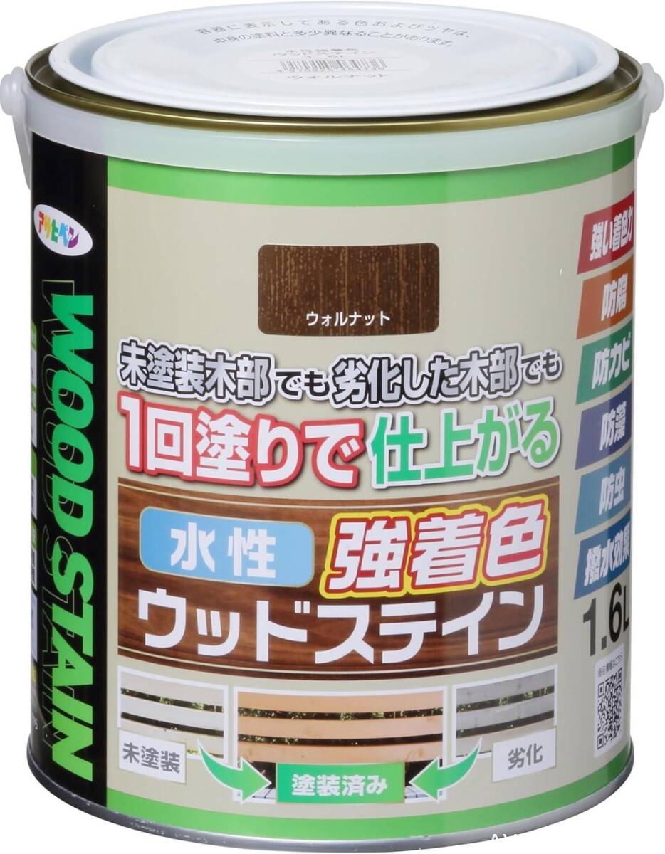 > アサヒペン 塗料 ペンキ 水性強着色ウッドステイン 1.6L ウォルナット 水性 木部用 1回塗り 低臭 塗りやすい 日光や雨に強