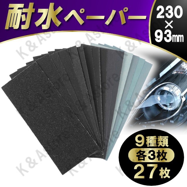 - 耐水ペーパー サンドペーパー 紙やすり オービタルサンダー用 ハンドサンダー用 研磨 リフォーム DIY 仕上げ 下地処理 細目 230×93mm 27枚