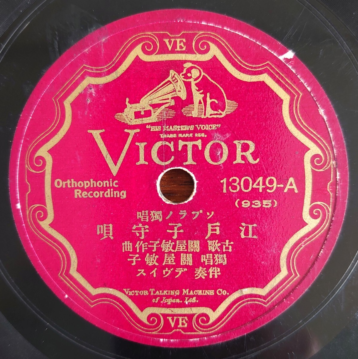 - 【SP盤レコード】VICTOR 13049 ソプラノ獨唱/江戸子守唄/大島民謠/獨唱:關屋敏子