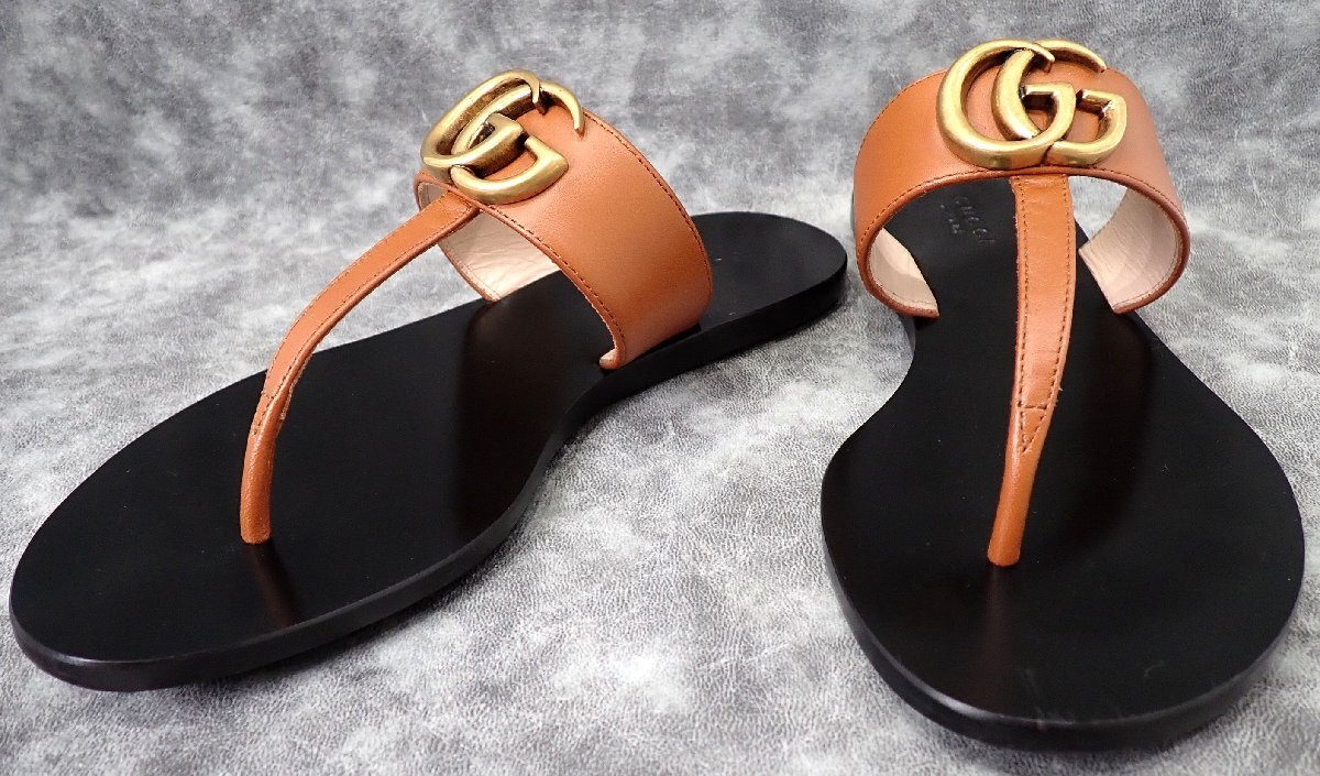 - 定価9万円↑未使用 超美品 グッチ マーモント レザー サンダル 35 1/2 ミュール 22.5cm 23cm レディース ブラウン 3360