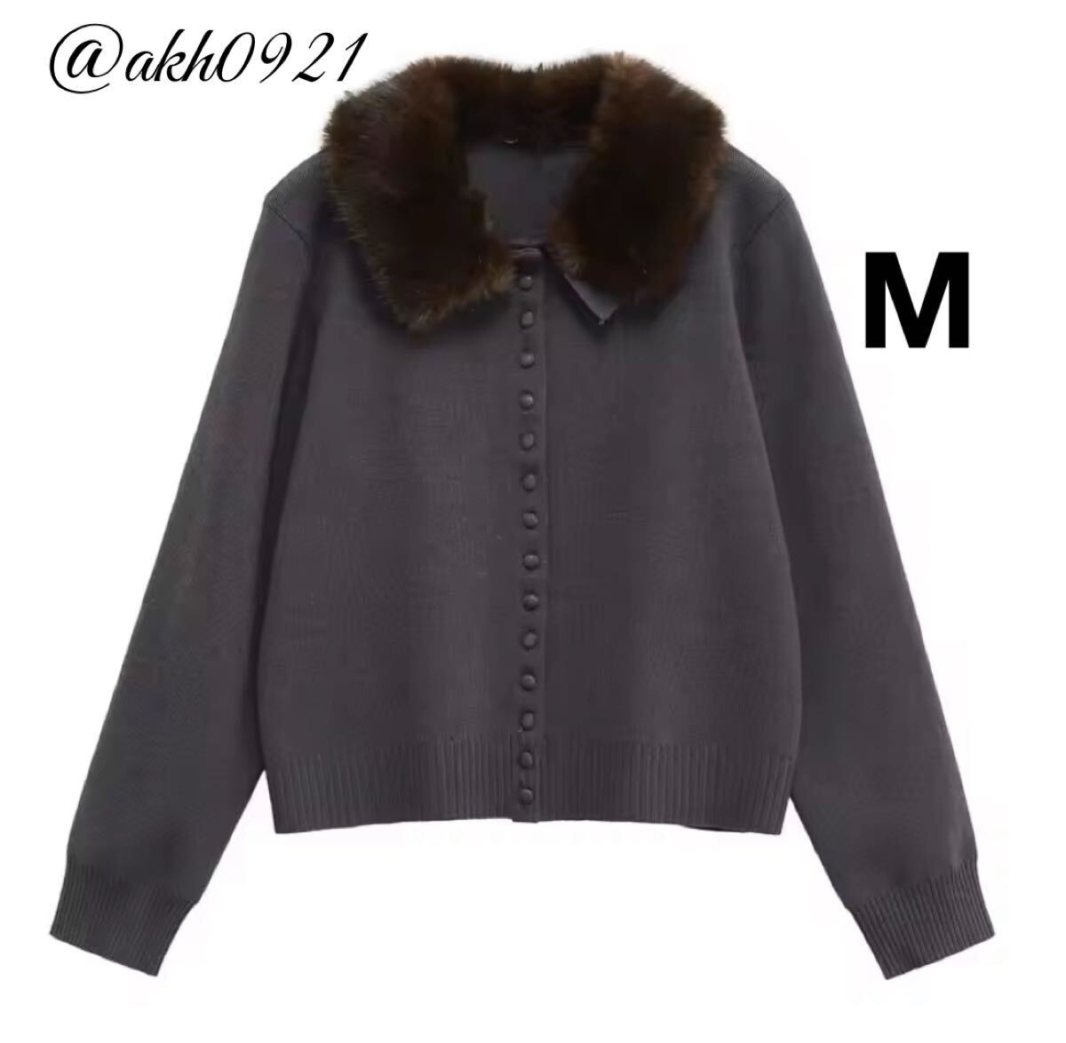 - 新品未使用★2025 秋新作★vintage ヴィンテージ レトロ ファー 襟 ニット カーディガン トップス Mサイズ レディース★ZARA 好きな方に